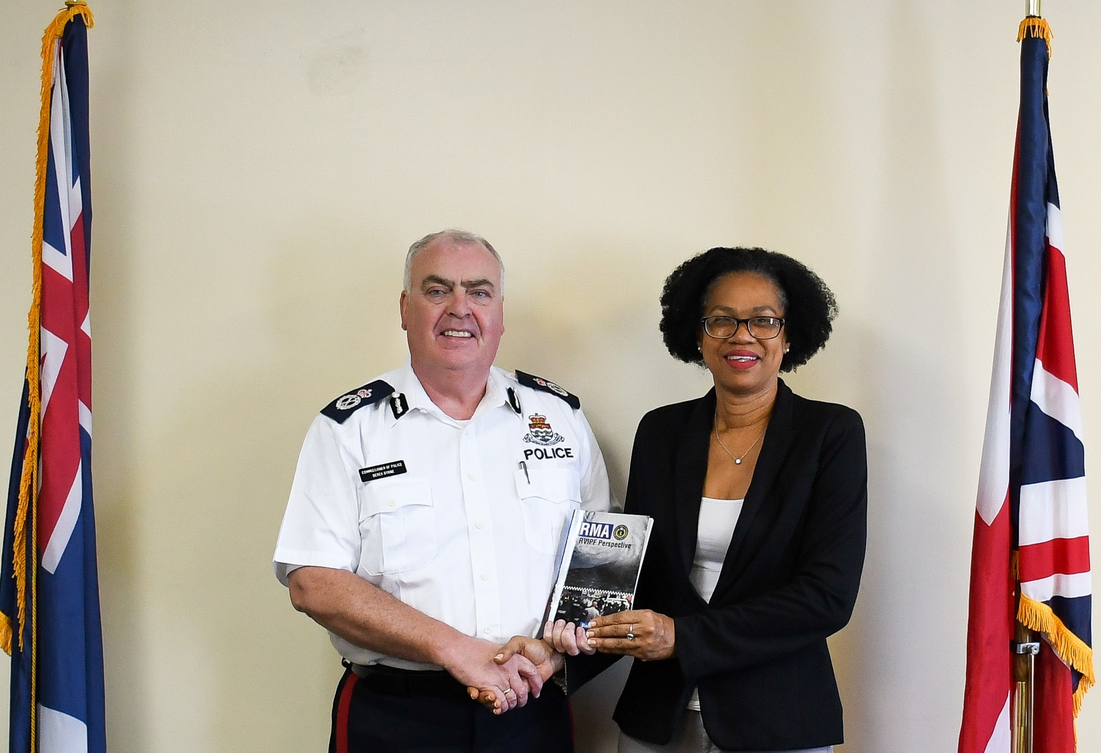 “I am honoured to receive this book, and even more honoured that our officers were able to be a part of it, and, more importantly, able to provide our help to the BVI during that critical time,” said Commissioner Byrne. “The feedback received is that our officers performed their duties with great professionalism, working long hours in difficult conditions with local officers and other relief agencies. I am also quite happy to see the great progress BVI has made in recovering since the hurricane struck.”