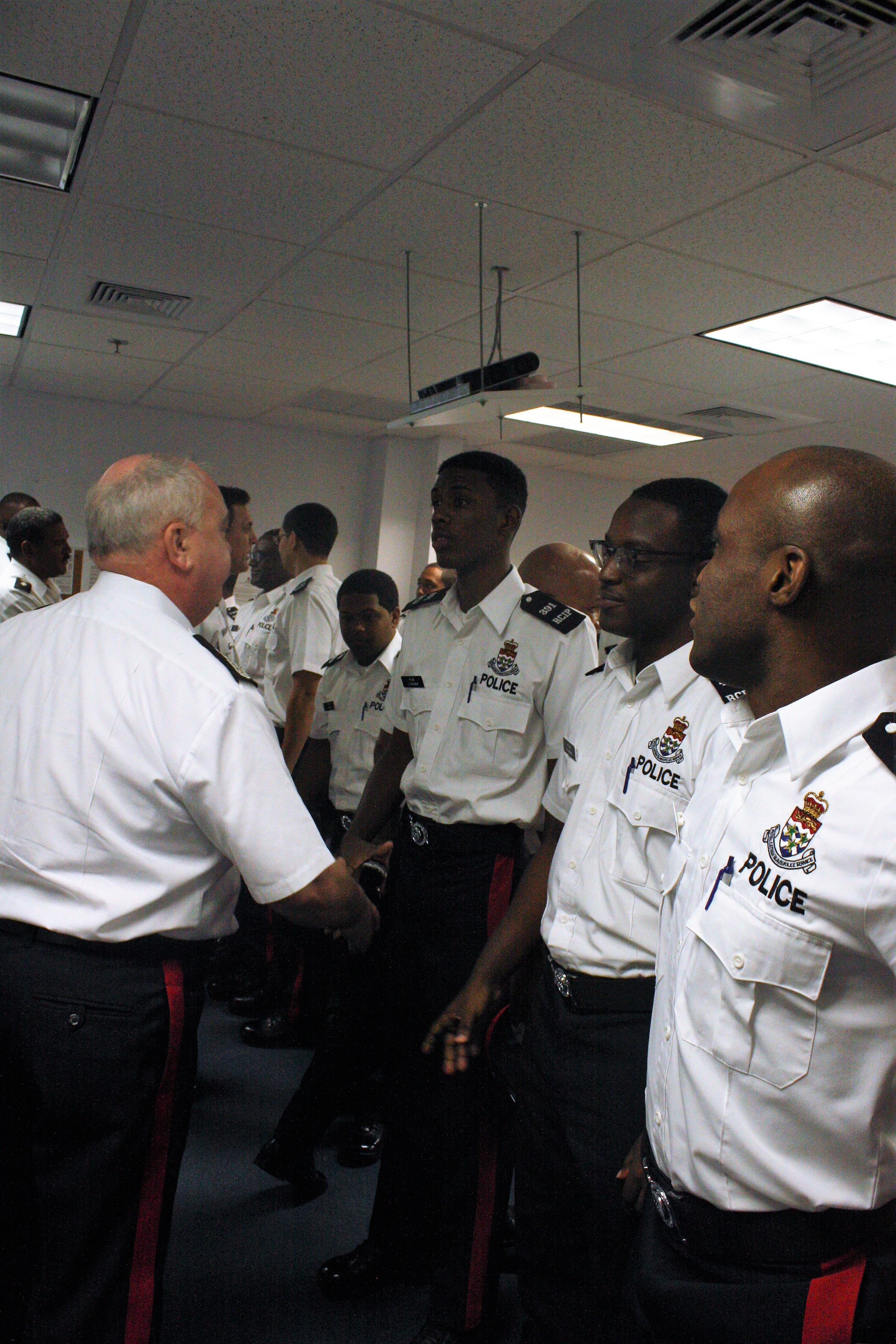 3. Commissioner of Police, Derek Byrne, shakes hands with one of the new recruits