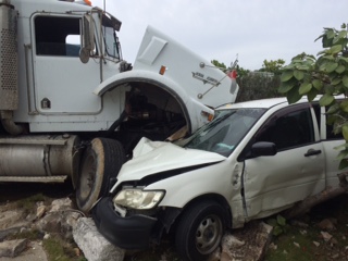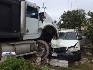 12:30PM, 31 July 2018 - Police are informing the public that Bodden Town Road in the vicinity of Anton Bodden Road is currently blocked in both directions due to a serious accident involving a truck and a motor vehicle. No one was seriously injured in the accident, but it is expected to take some time before the road is cleared for traffic.