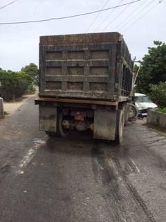 Bodden Town Road has been closed in the vicinity of the accident and traffic is being diverted onto Anton Bodden Drive. Heavy equipment has arrived on scene to assist in clearing the roadway, which will remain closed until the truck is unloaded and removed from the road.