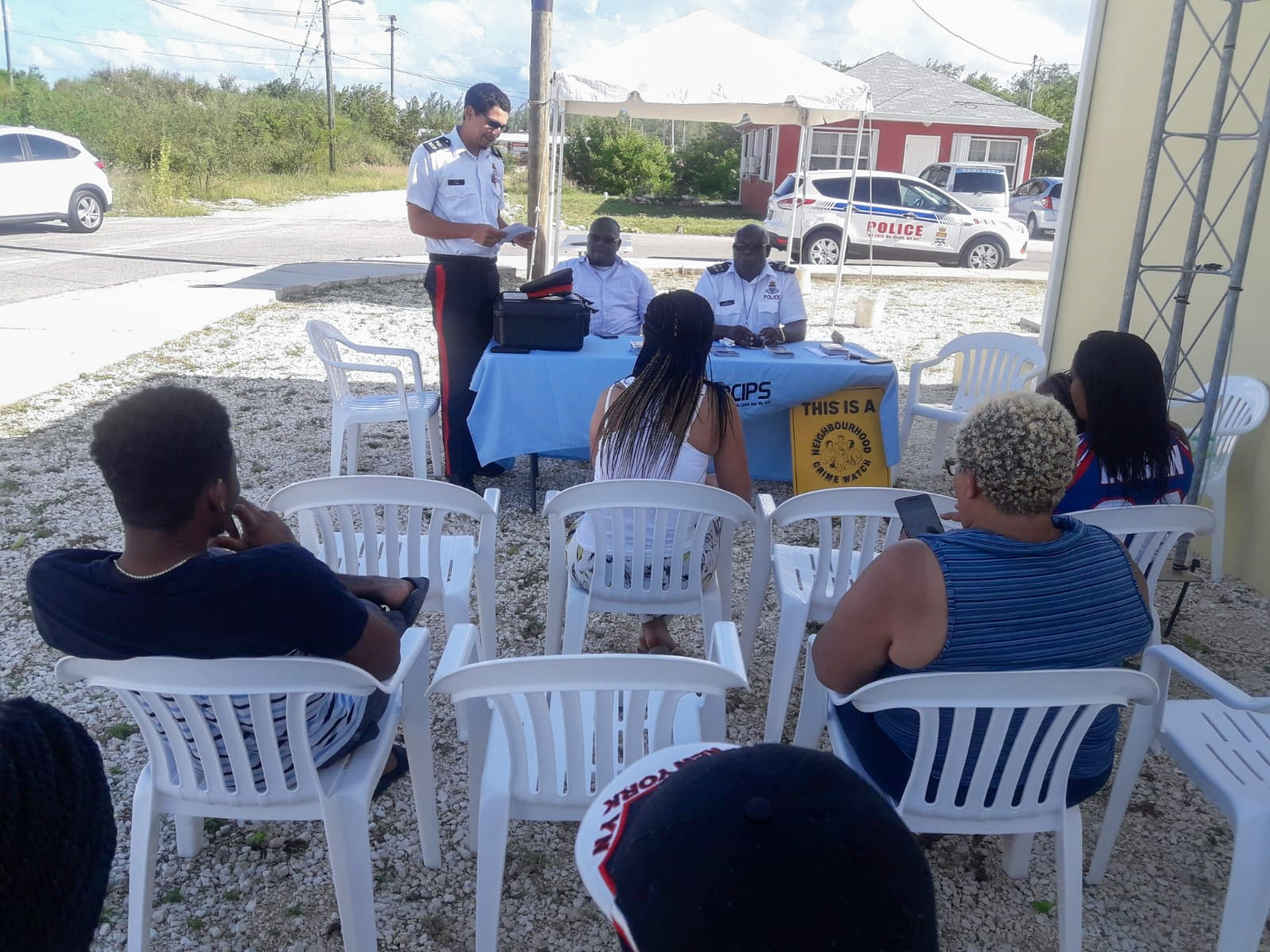 Bodden Town CPD officers PC Garcia and AC Pascal gave a presentation to the residents, who reaffirmed their commitment and willingness to report suspicious activity and crime to the police, in order help ensure peace and tranquility in their community. The presenters were supported by fellow officer, PC Matthews.