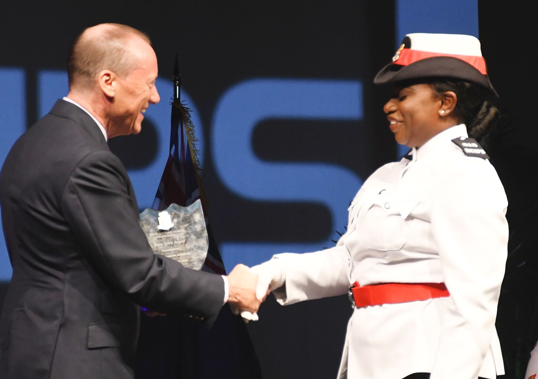 His Excellency the Governor, Mr. Martyn Roper also made his remarks to the recruits saying “The overall majority of people in our community want you to be there and need you to be there and your efforts at work will make a difference in people’s lives, which is what we aspire to do in the public service. I sincerely hope you will follow your responsibilities with integrity and pride as we continue to build a world class civil service. I want to congratulate you all and I thank each one of you for your joining the Royal Cayman Islands Police Service and for the service you will give for many years to come. ”