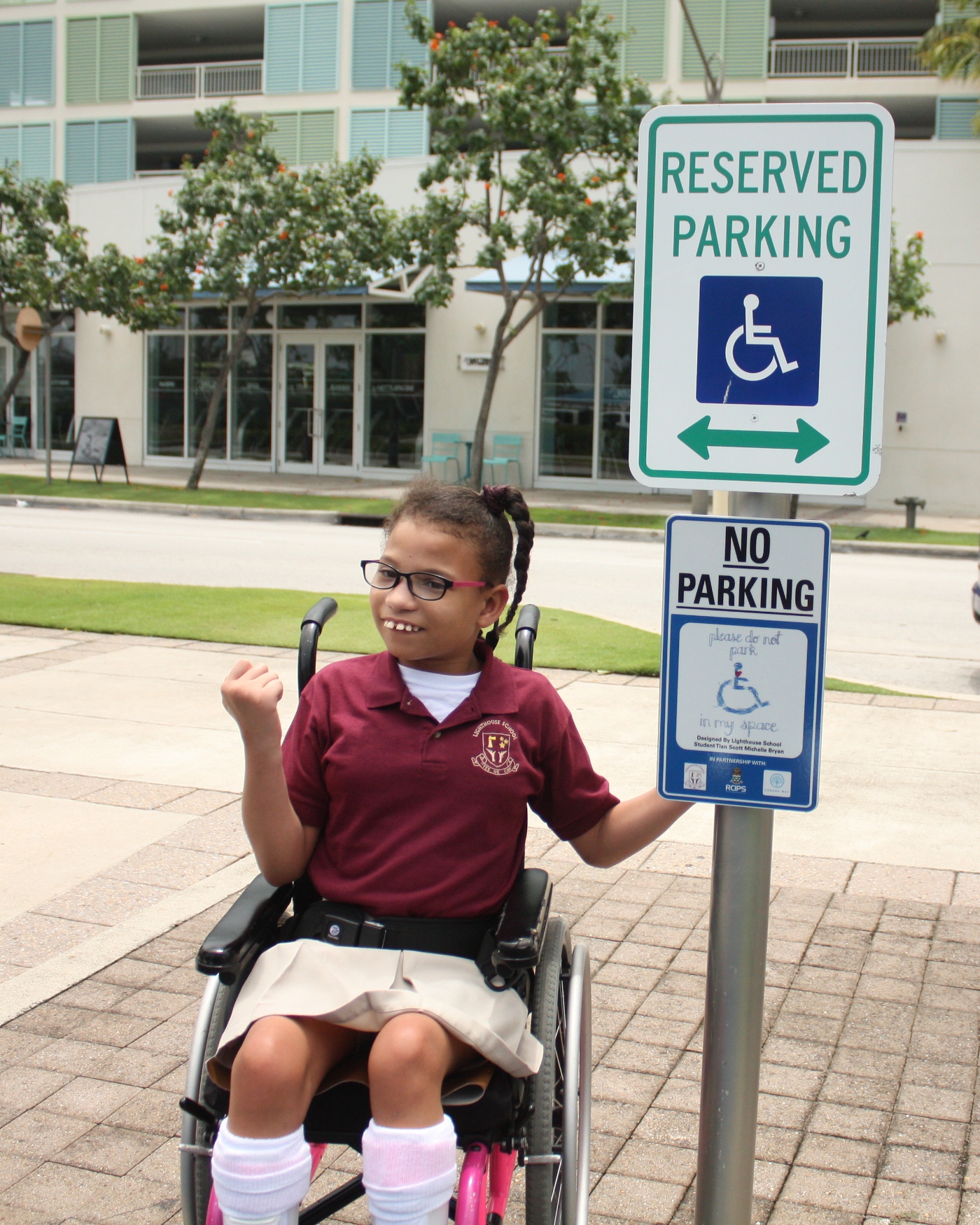 “How I thought about it, was that we should all be fair,” said 15-year-old Lighthouse student, Chelsea Frederick, when asked what she was thinking when she came up with her design for one of the signs. “It’s not fair to have people always parking in our spots. We need those spots for our parents to park in when they take us out, and it’s not fair that they are used by people who don’t have special needs.”